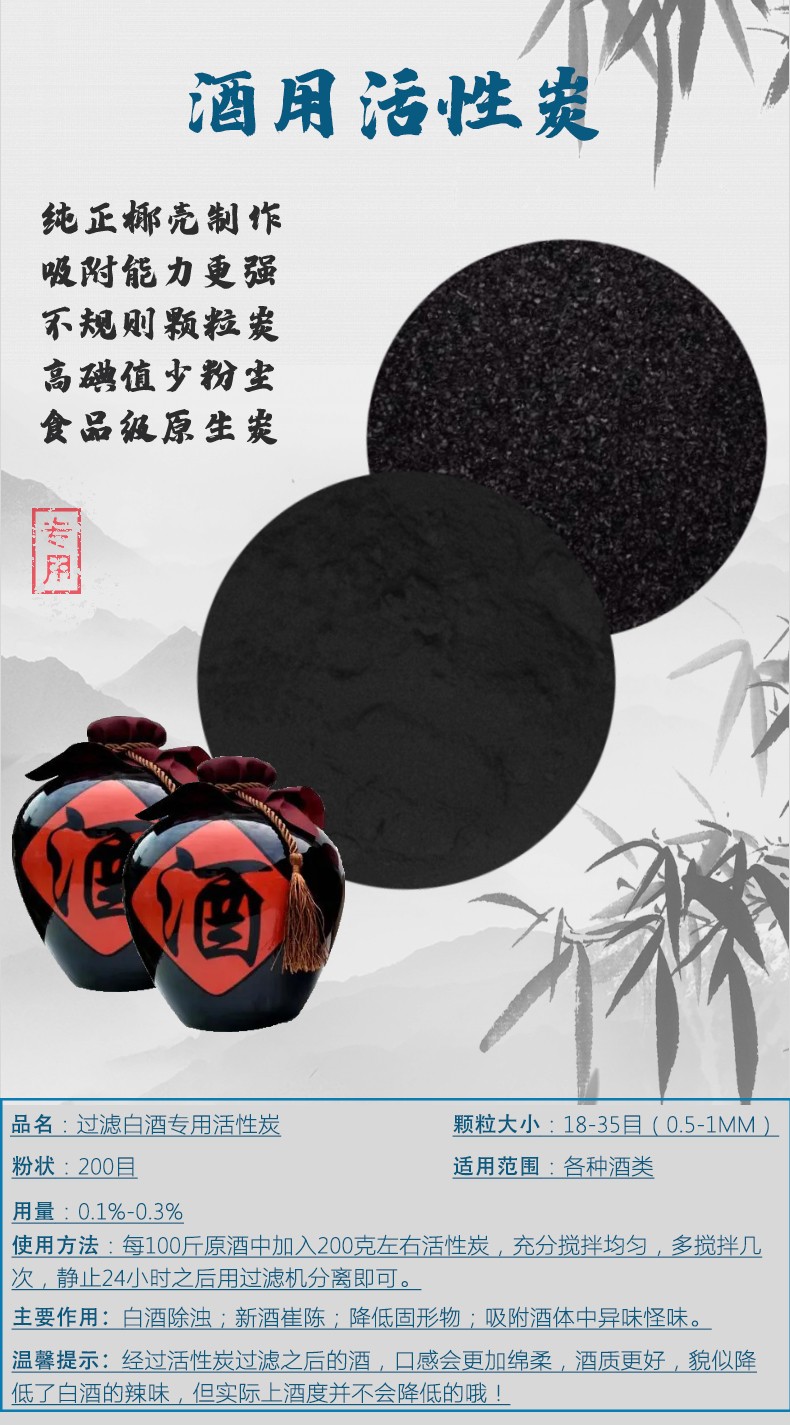 加酒類專用活性炭:按處理酒量的3%準確稱取專用炭,加入降度的酒中。