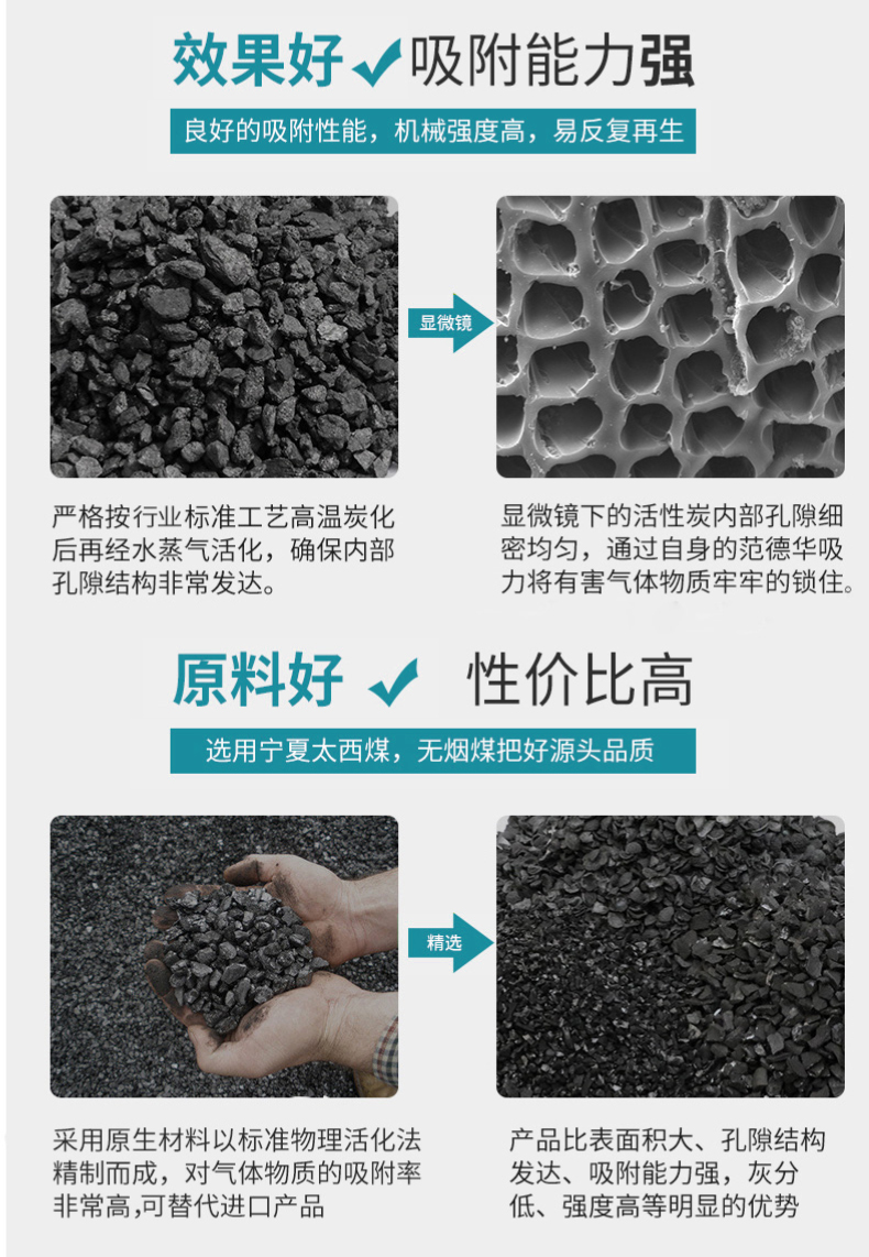 煤柱狀活性炭具備間隙構造繁榮,比面積大,吸附能力強,機器強度高,床層阻力小,化學安定性能好,易再造,經久耐用等優點。產品孔徑分布合理,達到理想吸附與脫附,從而大大提高產品的使用壽命(平均2-3年),是平常煤質炭的1.4倍。
