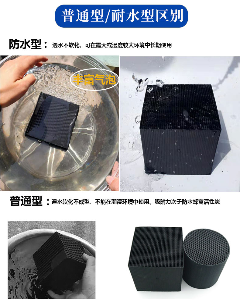 1、產品規格:主要表示蜂窩活性炭的形狀大小,常見的有100*100*100mm / 100*100*50mm。